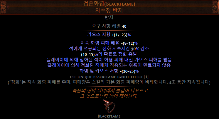무기 스왑해서 화염 격발 + 말살로 맵핑하는 망령 모독 검은 화염 시체 폭발 엘리
