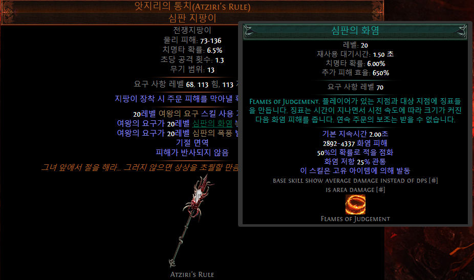 주문 화염 피해, 시체 체력 기반 화염 피해 이렇게 2개가 따로 딜 들어가는 방식이라