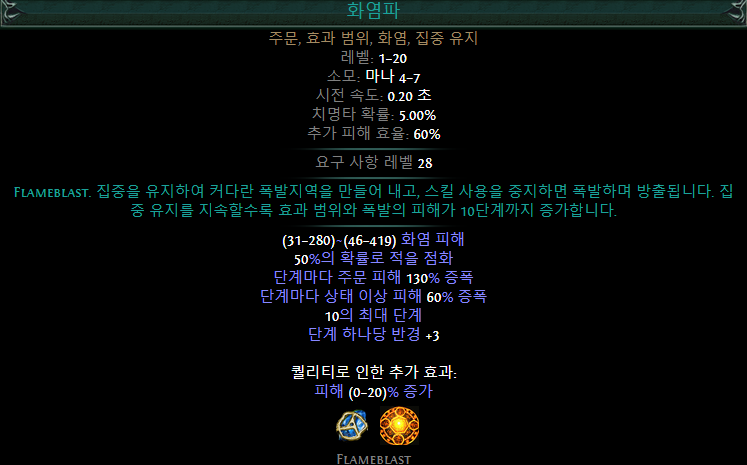 레벨에 따라 폭발 범위가 늘어나긴 하지만 마나 소모와 원소 반사를 생각한다면 그냥 1 레벨로 사용하는 걸 추천.