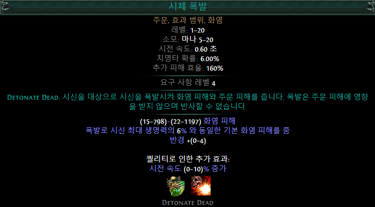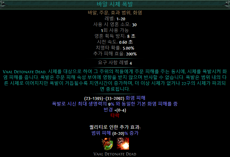 시체 폭발 젬 레벨은 점화 딜이랑 상관없다.
