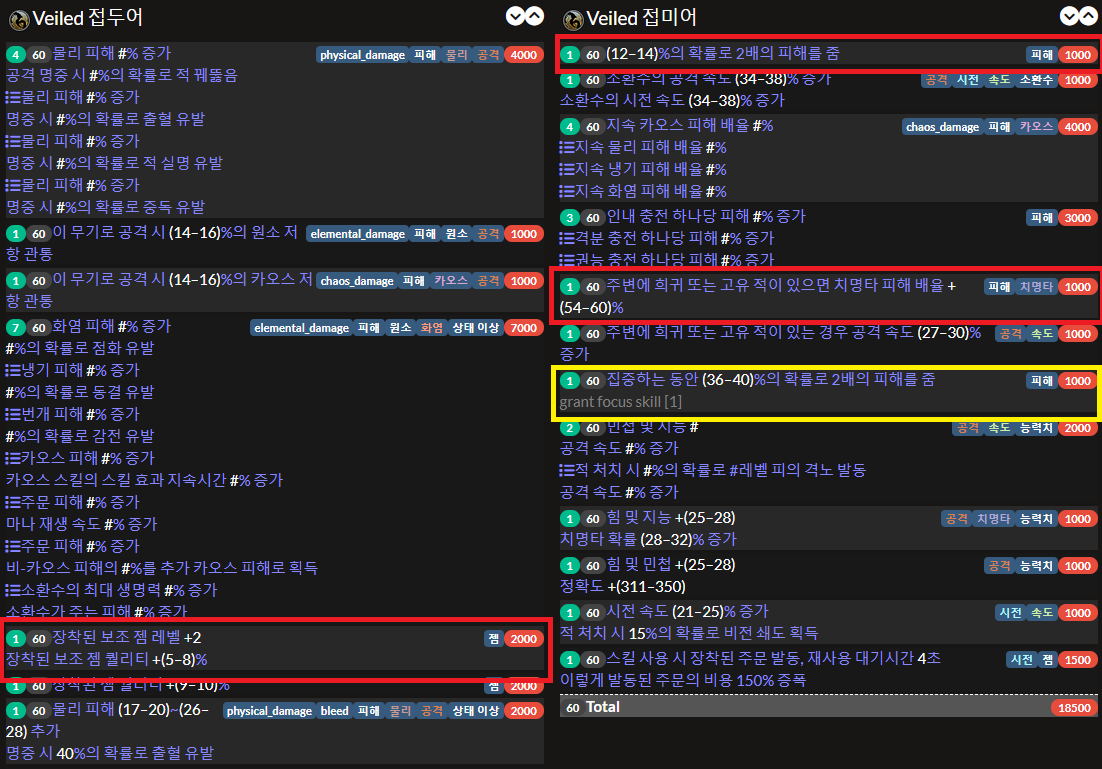 가중치 때문에 옵션 뽑기 힘든 것도 있는데 원소 과부하 + 장대한 파장 세팅 빌드랑 템이 겹치기 때문이다.
