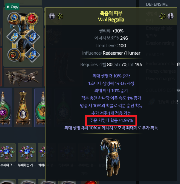아마 딴 세팅에서 쓰던 갑옷 그대로 가져온 거 같은데 주문 치명타 확률은 천둥의 전령에 적용 안됨.