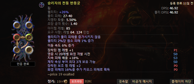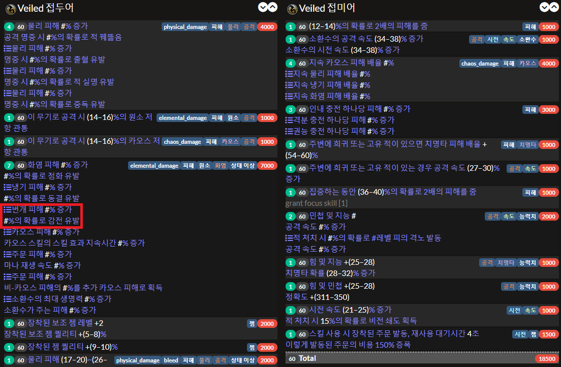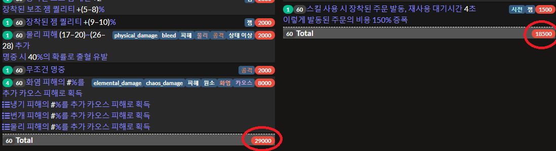 가중치 때문에 옵션 뽑기 힘든 것도 있는데 원소 과부하 + 장대한 파장 세팅 빌드랑 템이 겹치기 때문이다.