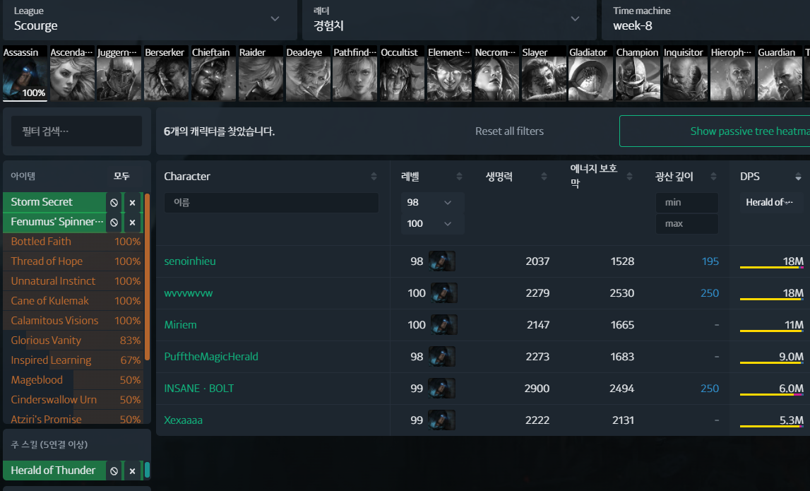점화 특성상 dps 수치 그대로 쭉 일정하게 유지되기 때문에 실질적으로 체감 dps는 다른 빌드에 비해 높은 편이라 이 정도면 메이븐 파밍 같은 거 아니면 충분한 딜임.