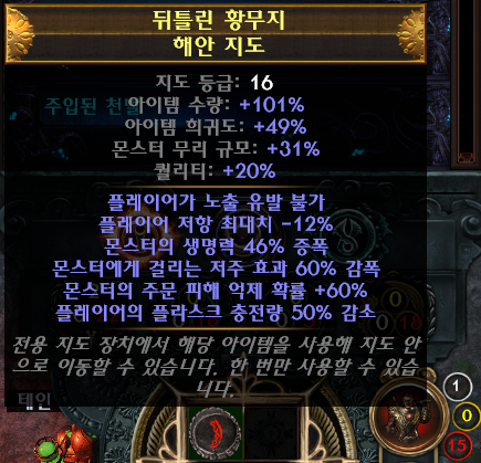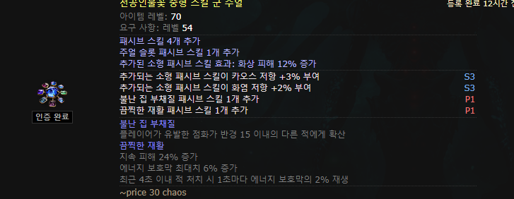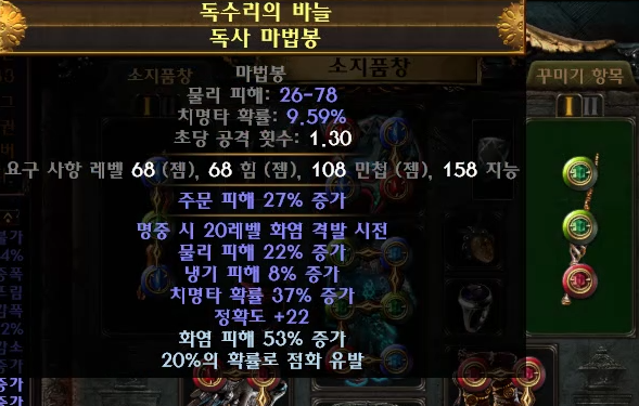지속 피해 배율 붙은 장비는 검은화염 유니크 딱 하나밖에 없고 다 생존 옵션만 챙김.