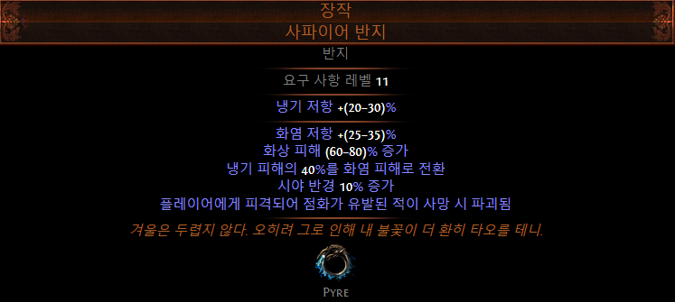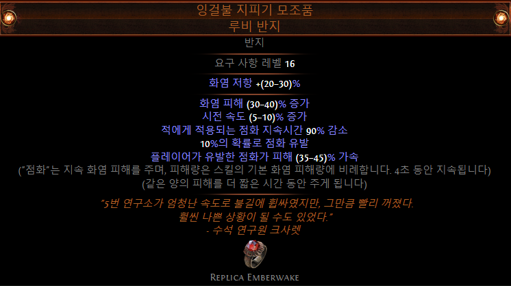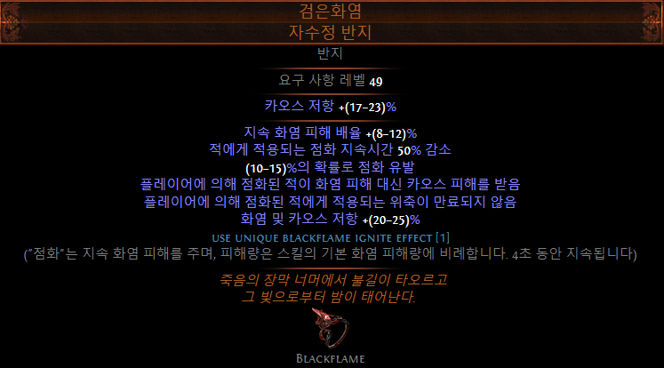 검은 화염을 안 쓴다면 점화 빌드 최종 반지.