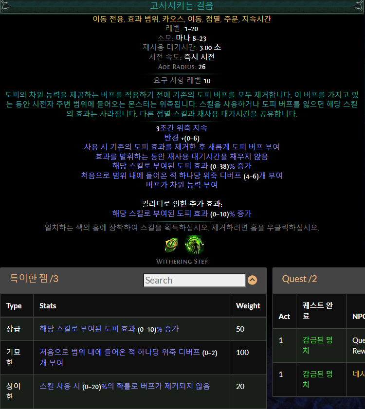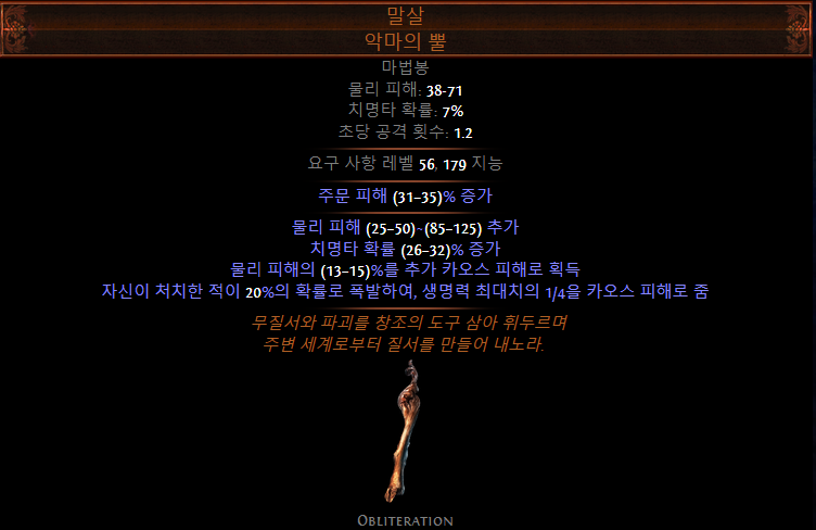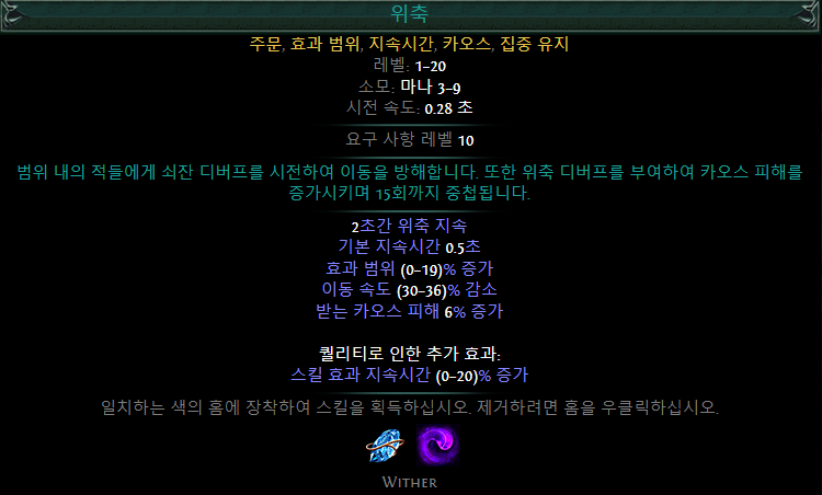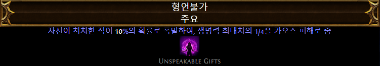 대충 위축 효과 증가 마스터리까지 찍으면 받피증 100% 넘어서 딜 상승이 높아 점화 빌드에서는 엔드 템 중 하나로 여겨짐.