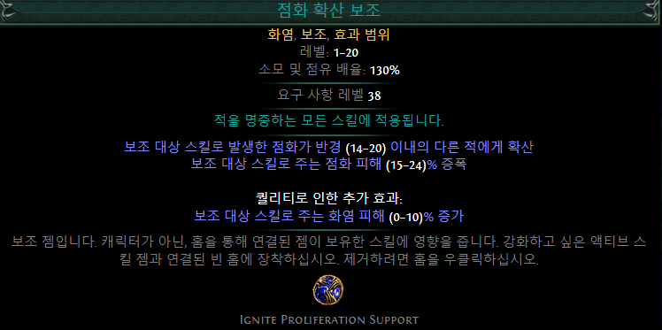 군 주얼이나 장갑 총주교 옵션에서 챙길 수 있는 점화 확산은 점화 전부 다 적용.