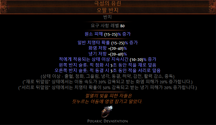 요구 사항이 정말 낮아서 부캐 키울 때 사용하면 편하고, 반지가 코어일 경우 대체하면 좋다.