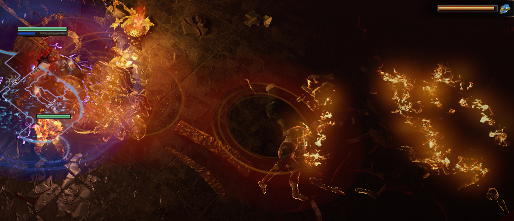 우측은 좌측 몹들이 옮긴 점화에 걸려서 죽은 시체라서 점화 확산 오라가 없다.