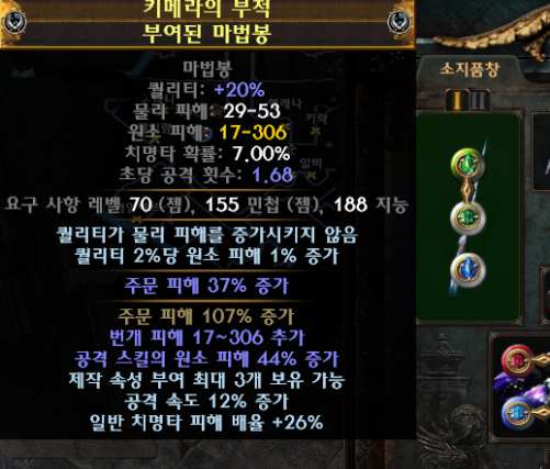 그리고 제작 마법봉 들면 이 빌드는 컨버트 없어서 물리 딜 반사로 죽는다.