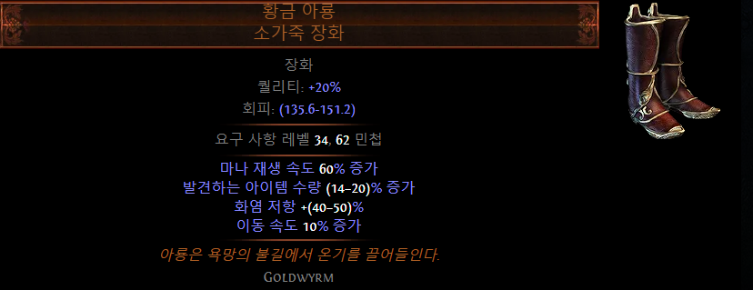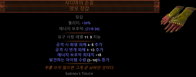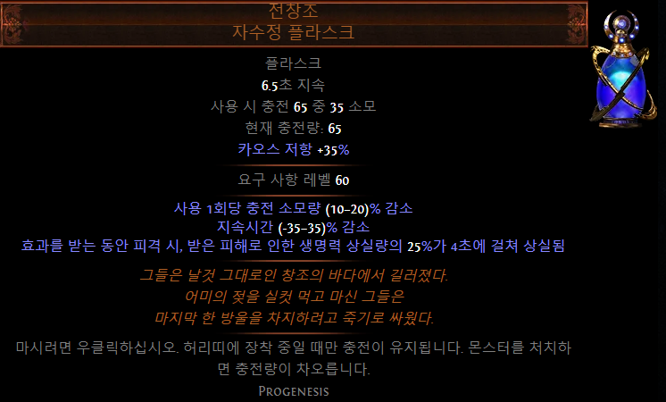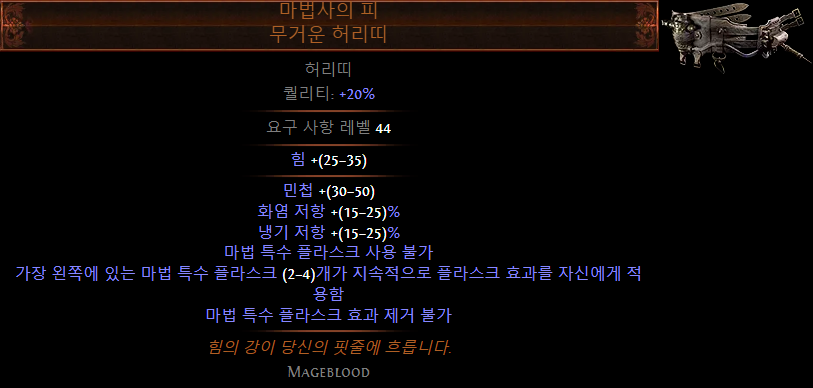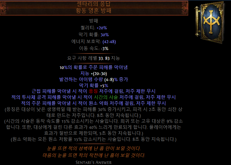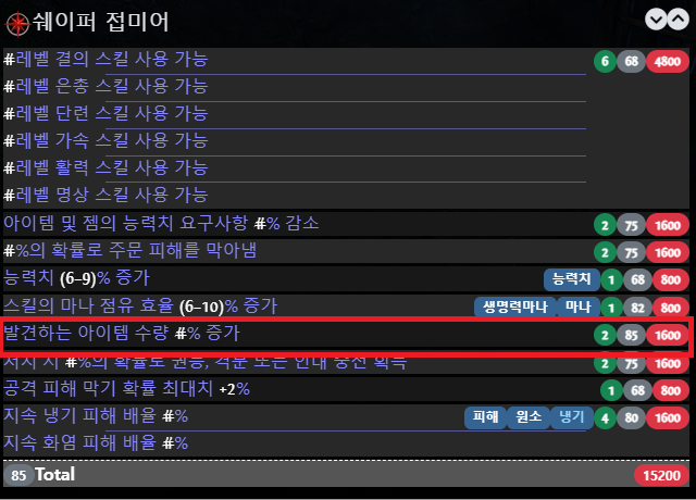 - 카오스 저항 or 마나 점유 효율 증가 등 원하는 옵션