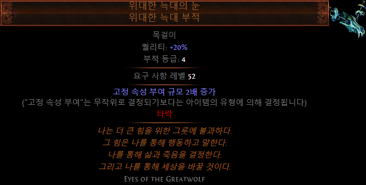 위대한 늑대의 눈 or 평범 목 수량 20%