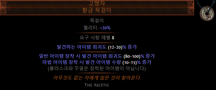 광란 20 스택당 2% 피해 증가 버프도 좋고, 15 스택당 희귀도 1% 증가도 좋음.