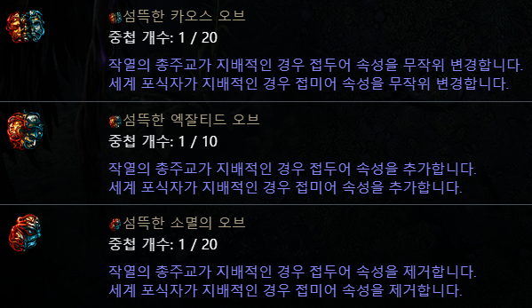 섬뜩한 오브들이 생겨서 접미만 완성해 두면 접두 무한 트라이 가능하기 때문에 망해서 처음부터 다시 시작같이 스트레스받는 일 없이 제작가능