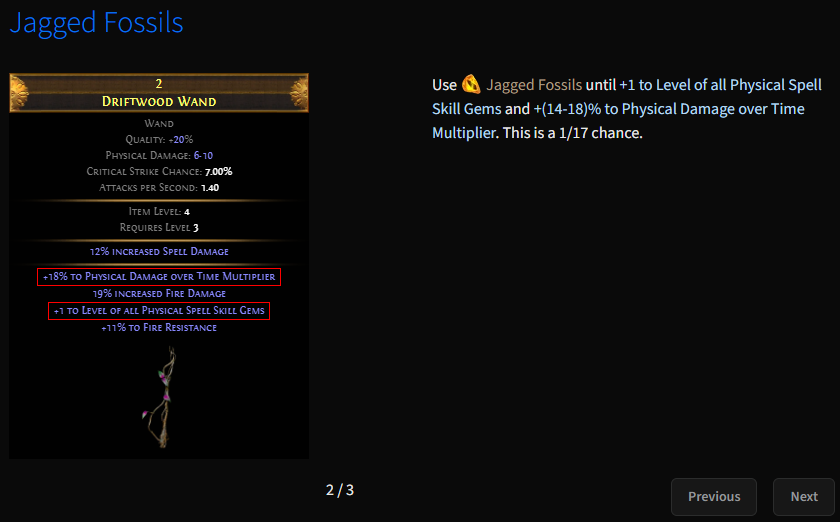 '4렙' 완드를 사다가 뾰족한 화석으로 물리 젬렙 + 물리 도트 뽑고, 벤치 크래프팅으로 마무리.