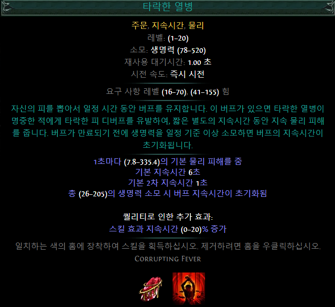 단점: 열병 스택이 균일하지 못해서 투사체 버프 쌓이기 전에는 깔끔하게 싹 죽이는 그림 잘 안 나옴