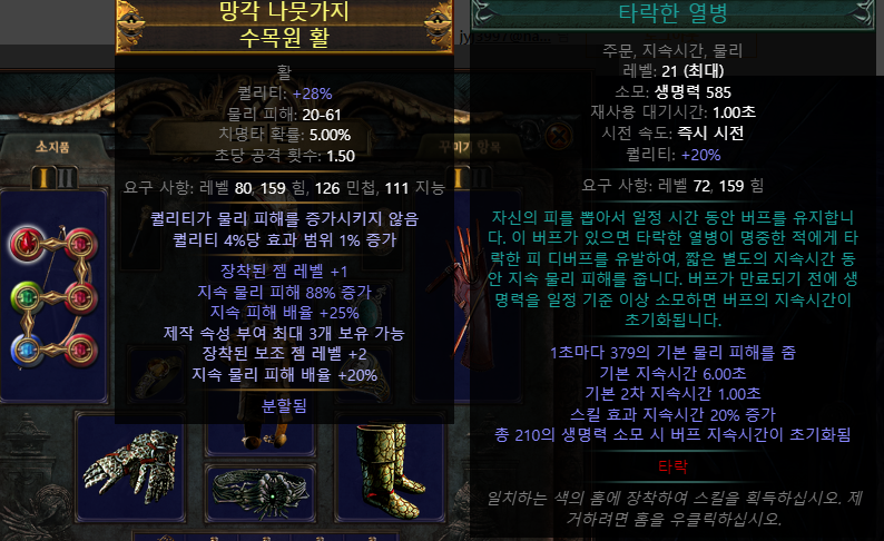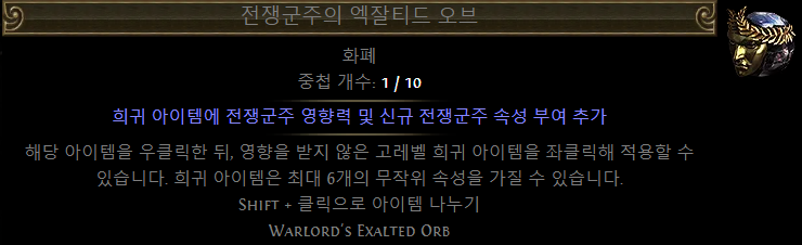 변옵, 제왕, 소멸의 오브 열심히 돌려서 지속 피해 배율 한 줄짜리 레어 활 만들기.