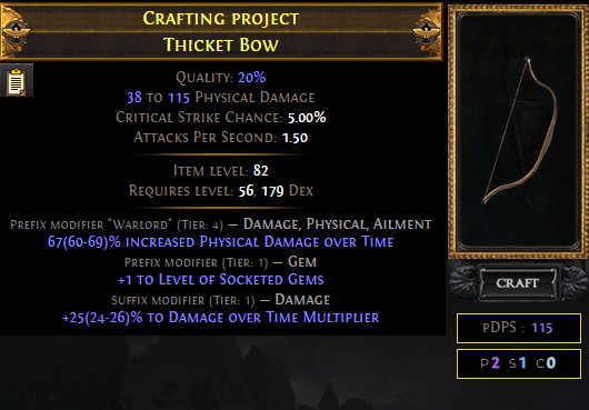 '4렙' 완드를 사다가 뾰족한 화석으로 물리 젬렙 + 물리 도트 뽑고, 벤치 크래프팅으로 마무리.